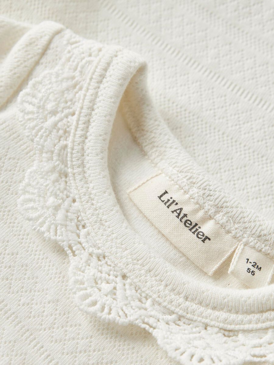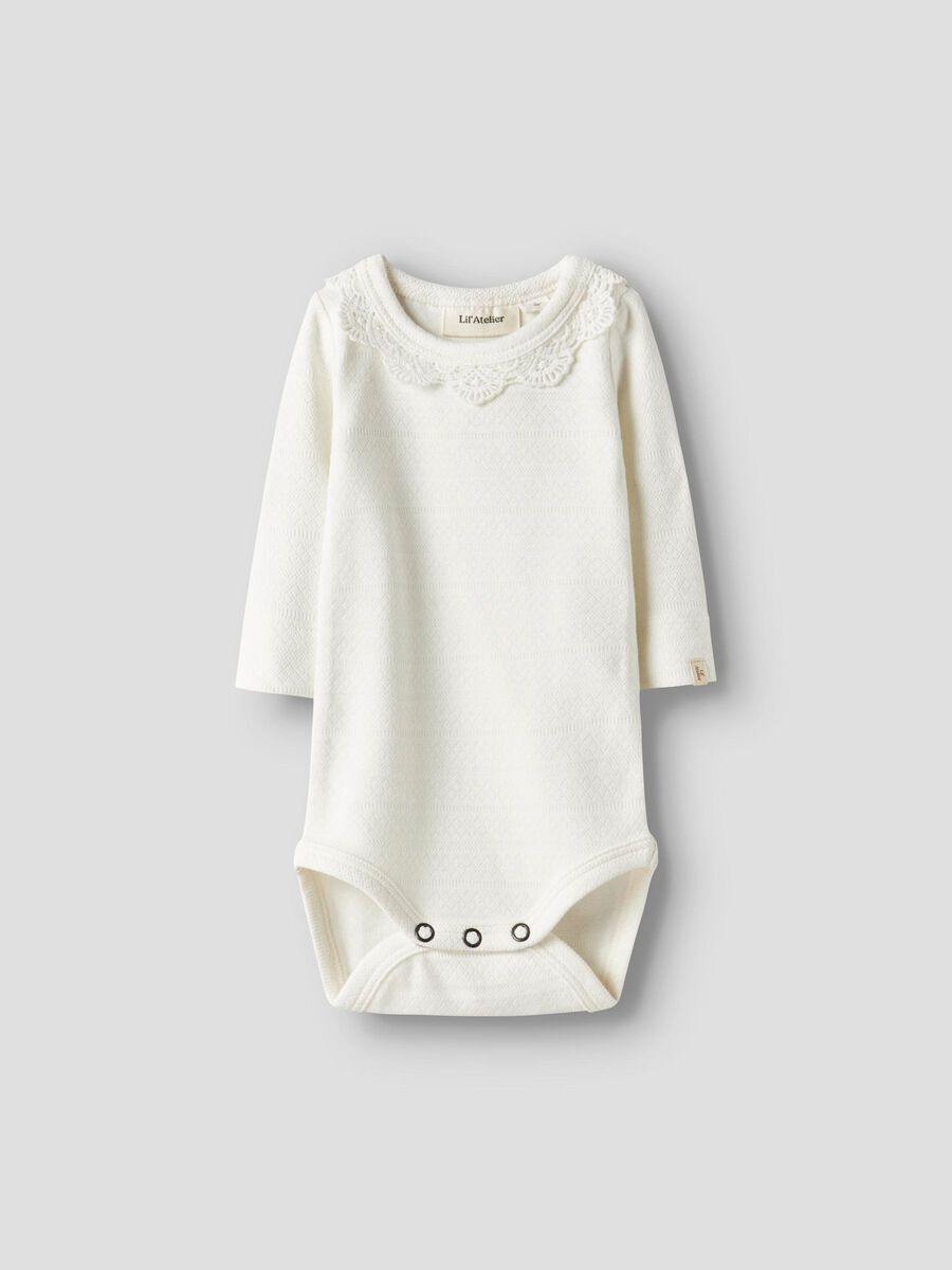 - Produktart: Body - Verschluss: Druckknopfverschluss im Schritt - Verschluss: Druckknopfverschluss an Schulter - Ausschnitt: Rundhalsausschnitt - Ärmel: Lange Ärmel - Weitere Details: Label - Weitere Details: Spitze - Stoff: Strick mit Lochmuster