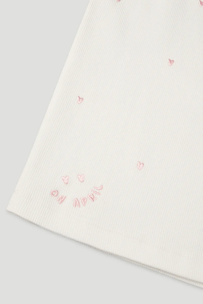 - Stickerei: OH APRIL und Herzchen in Sugar Pink auf dem gesamten Top verteilt