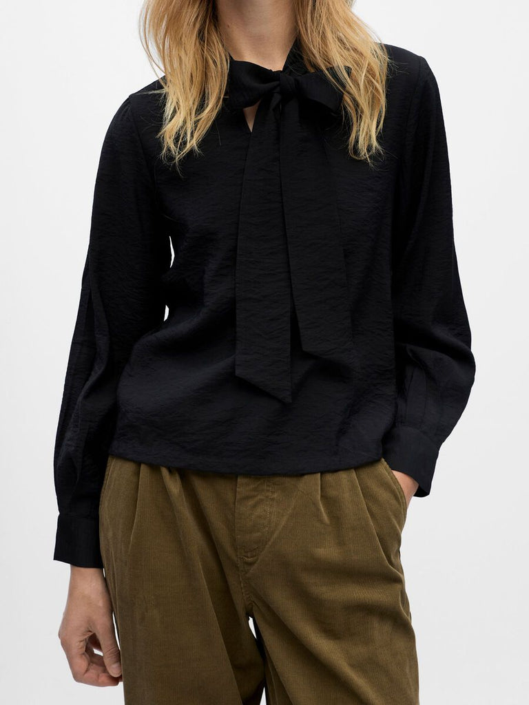- Bluse mit Bohèmeschleife - Lange Ärmel - Manschetten mit Knopf - Stoff mit Knitter-Effekt - Regular Fit - Das Model trägt Größe 36