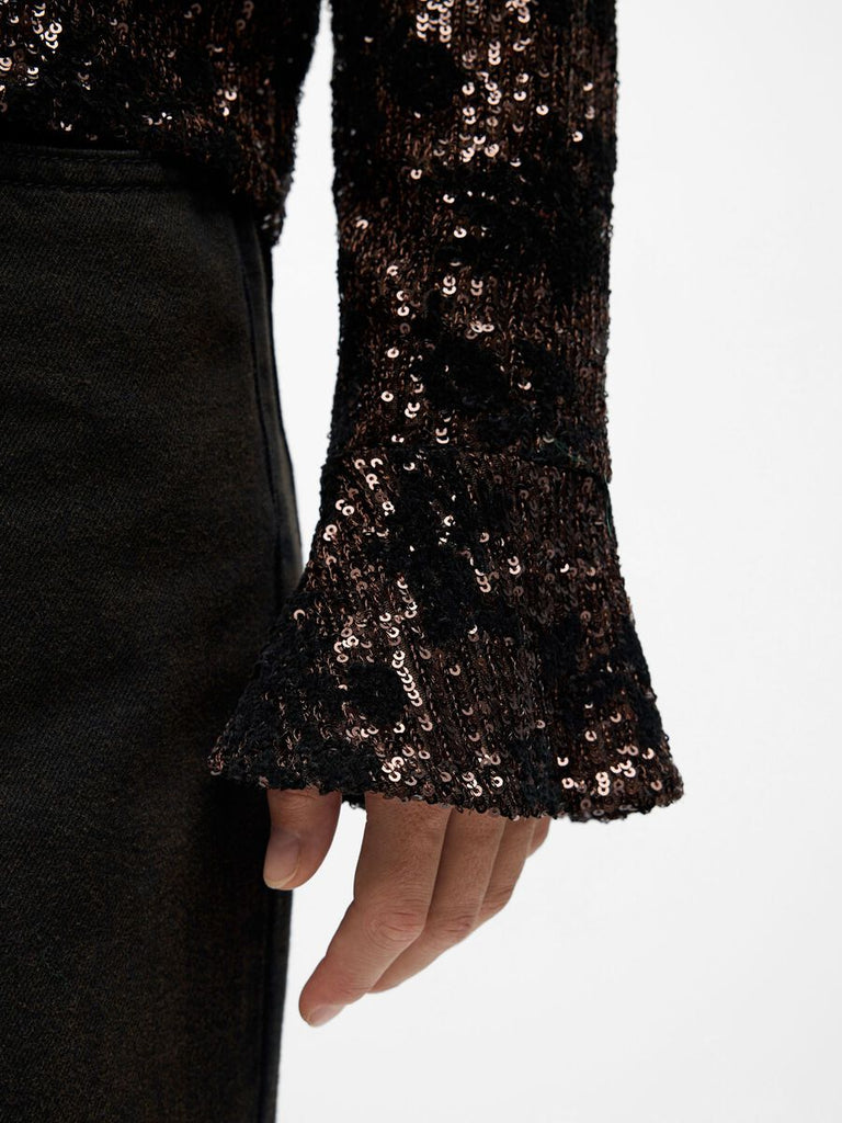 - Paillettenoberteil - Teil eines Outfit-Sets - Rundhalsausschnitt - Keyhole mit Knopfverschluss am Rücken - Lange Ärmel - Ausgestellte Bündchen - Regular Fit - Das Model trägt Größe 36
