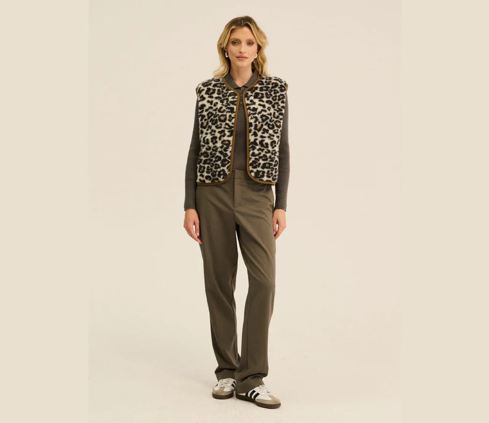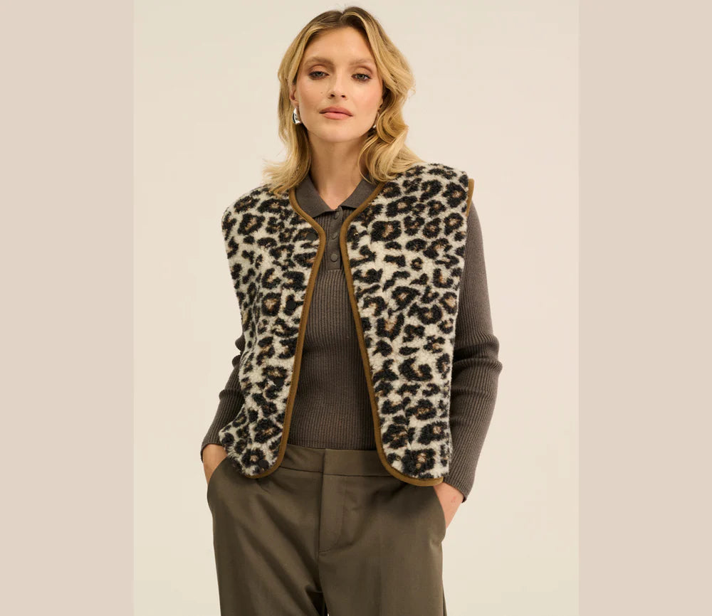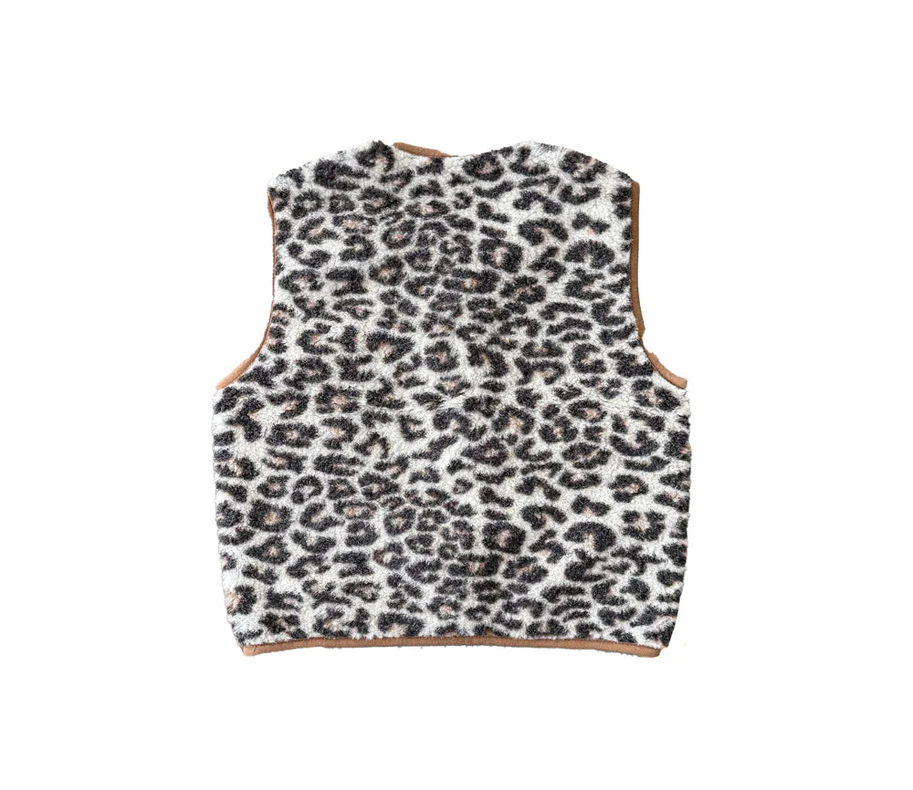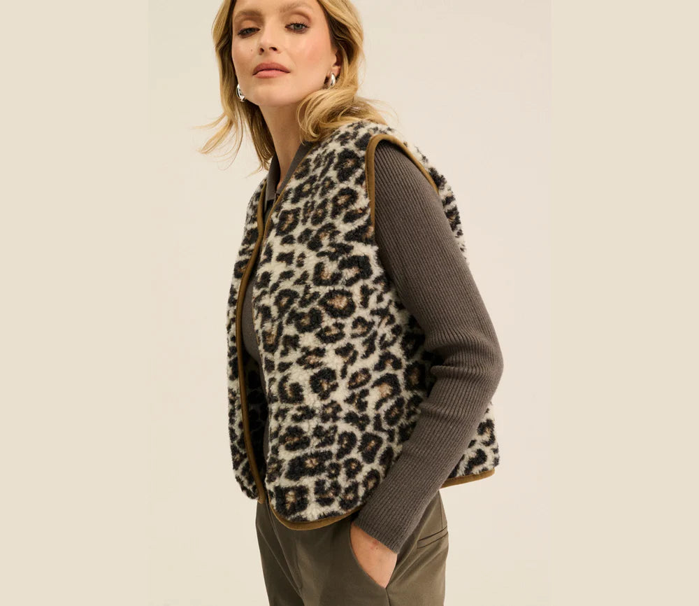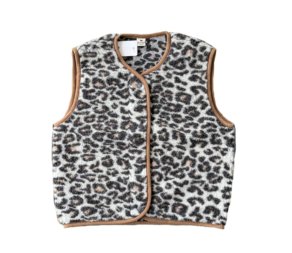 Alwero - Weste "TYB" Adult, LEOPARD WHITE, BRAUNER SAUM, Biowolle Ultra Light
