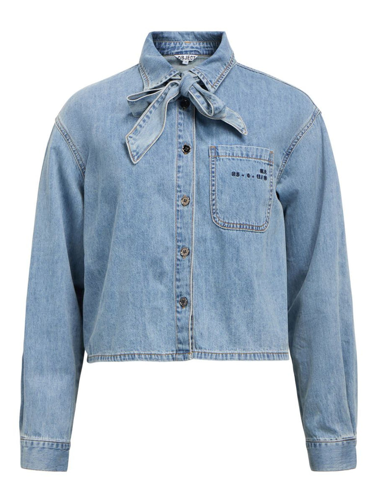 - Jeanshemd mit Bohèmeschleife - Überschnittene Ärmel - Lange Ärmel - Manschetten mit Knopf - Aufgesetzte Brusttasche mit Stickerei - Geknöpfte Vorderseite - Regular Fit - Das Model trägt Größe 36
