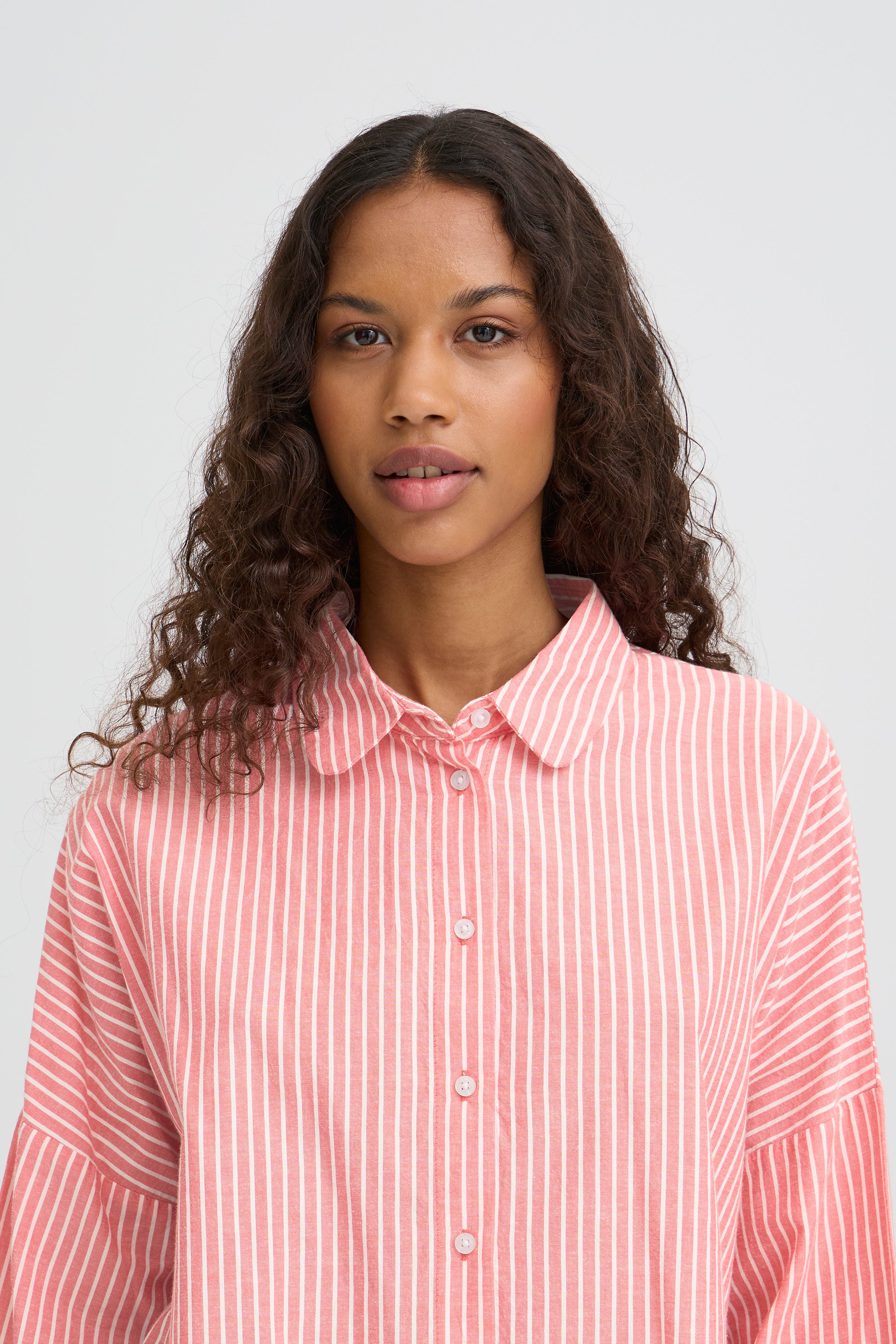 Gestreiftes Hemd im geraden, lockeren Schnitt mit klassischem Kragen und Knopfleiste. Überschnittene Schultern und lange Ärmel verleihen Modernität.