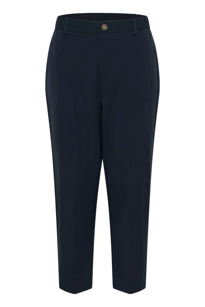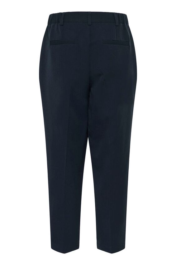 Kurze Hose mit lockerer Passform und schmal zulaufenden Beinen. Die Hose hat Bügelfalten vorne, einen mittelhohen Bund mit Reißverschluss und Knopfverschluss. Sie verfügt über seitliche Eingrifftaschen und paspelierte Gesäßtaschen und ist knöchellang.