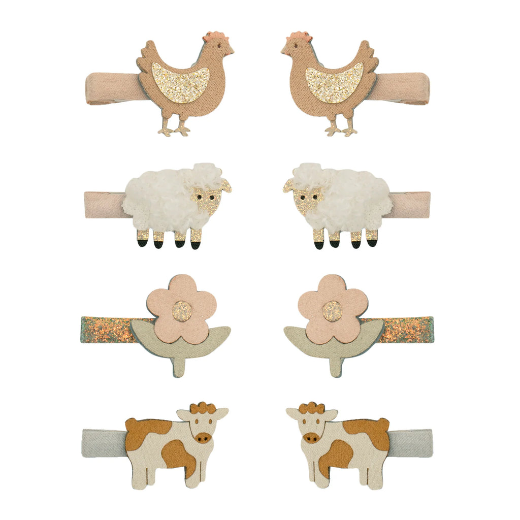 Verleihen Sie Ihrer Frisur mit diesen verspielten Mini-Clips mit Bauernhoftieren einen Hauch von Landspaß! Mit niedlichen Motiven von Hühnern, Schafen, Blumen und Kühen ist jeder Clip perfekt, um jeder Frisur eine fröhliche Bauernhof-Atmosphäre zu verleihen.