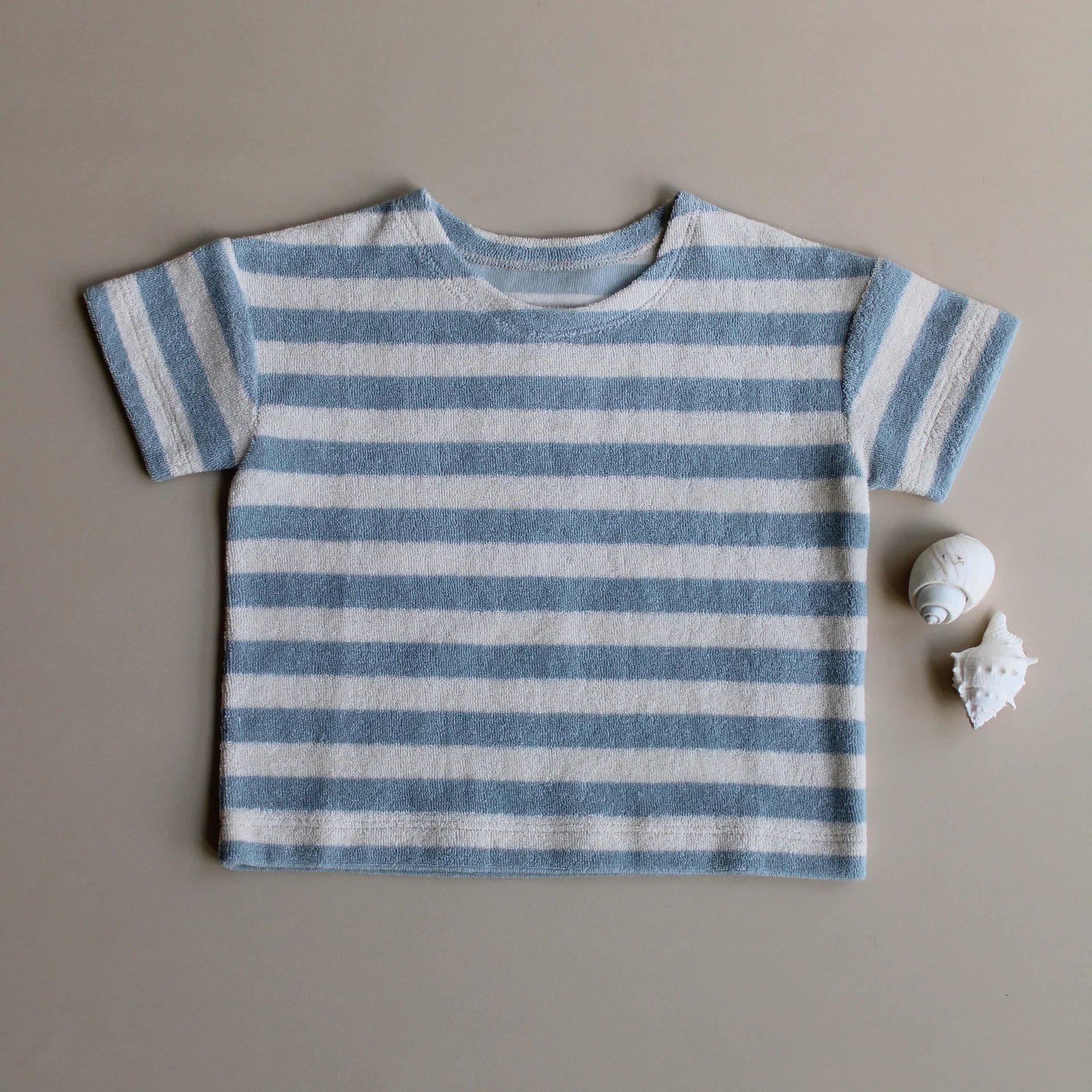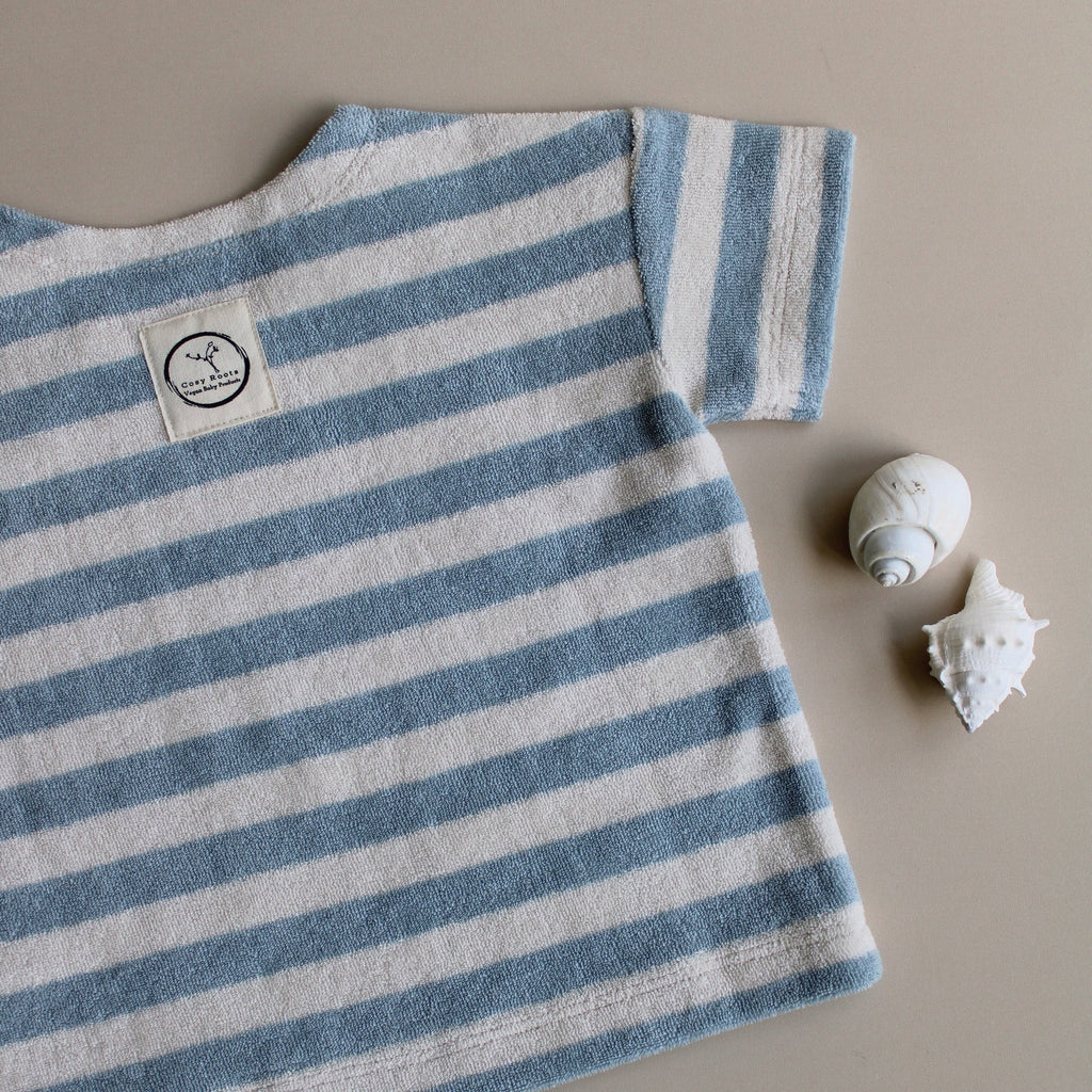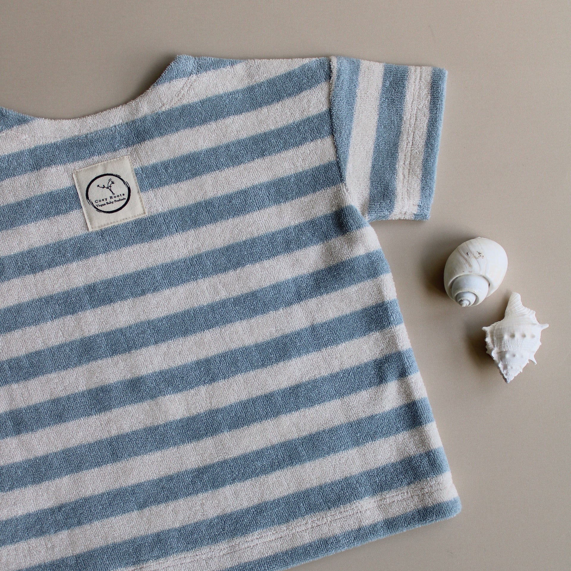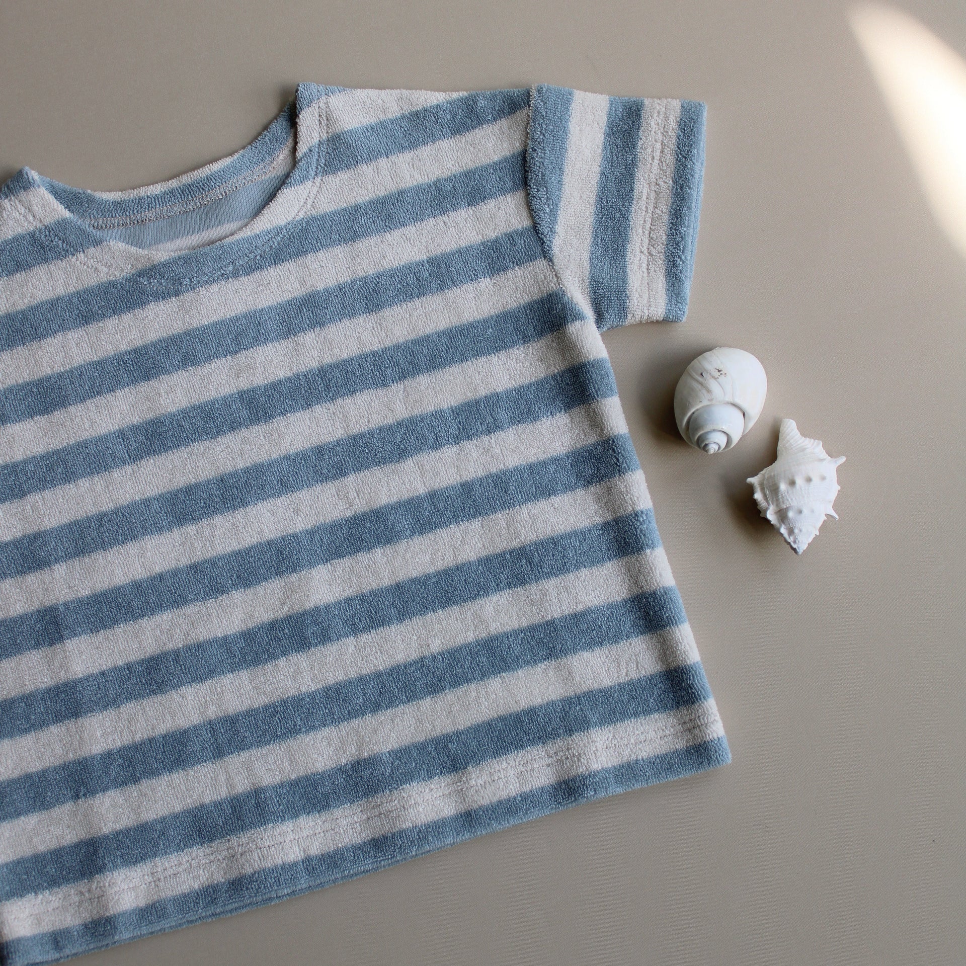 Kuschelig weiches Oversize Shirt aus GOTS-zertifiziertem Bio Teddy Stoff in unserer exklusiven Farbe Blue Striped.