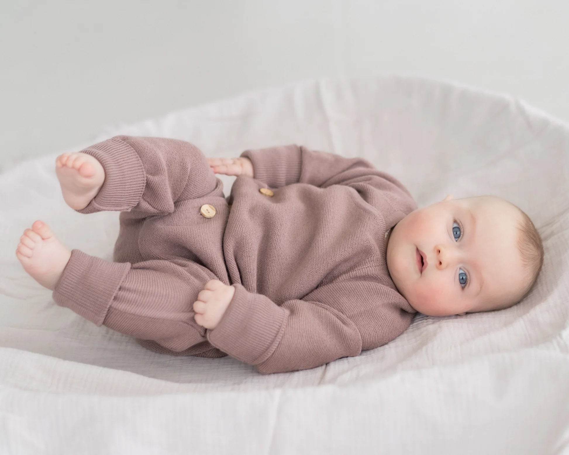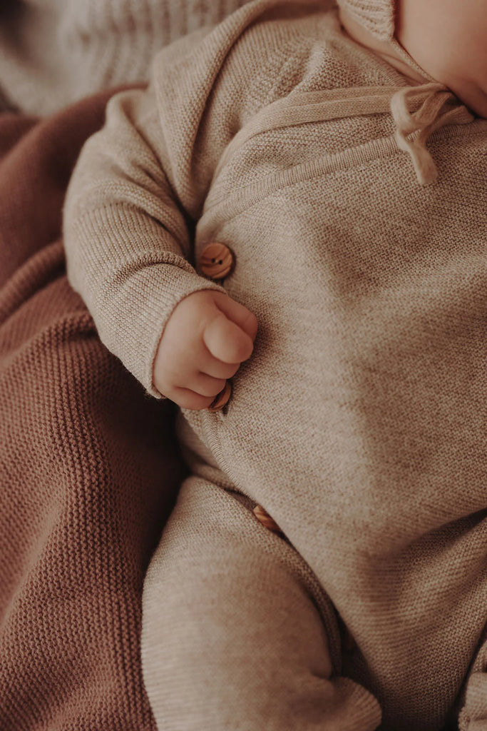 Feinstrick Overall mit Olivenholzknöpfen