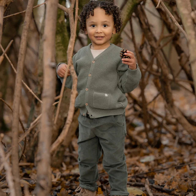 Ein echtes Must-Have in der Garderobe jedes kleinen Jungen! Diese Weste ist die perfekte Zwischenlösung für die Tage, an denen eine Jacke zu warm, aber ein Shirt zu kühl ist. Außerdem lässt sie sich endlos kombinieren - über einem T-Shirt für einen verspielten Look oder mit einer Bluse für besondere Anlässe. Lassen Sie Ihr Kleines stilvoll aus dem Haus gehen mit dieser warmen, gestrickten Weste in einem wunderschönen Waldgrün. Die Holzoptik-Knöpfe und die Taschen auf der Vorderseite verleihen dieser Weste das gewisse Extra an Charme. Bio Baumwolle