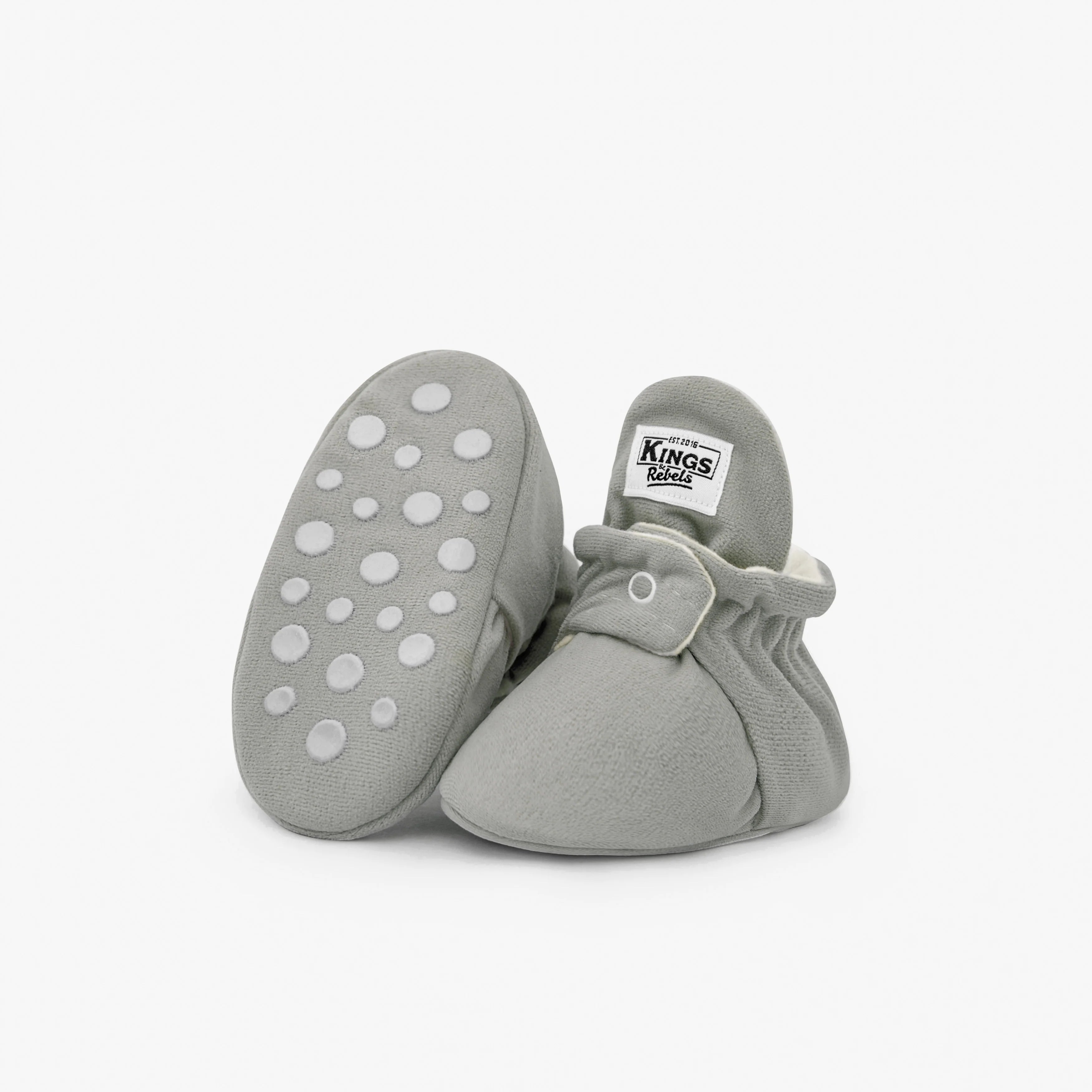 Die Kings & Rebels Baby Booties wurden mit einem einfachen und praktischen Druckknopf- Verschluss entworfen, was das Anziehen von strampelnden Babys in wenigen Sekunden ermöglicht.