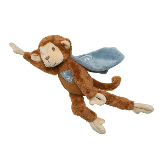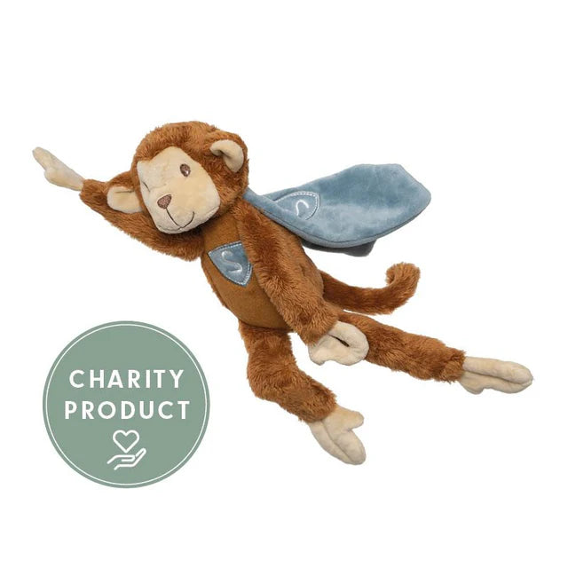 Der weiche Kuscheltier Superaffe ist der beste Freund von Sophia und begleitet sie auf jedem Abenteuer. Er ist wunderbar weich und hat einen Umhang wie ein echter Superheld. Wie jedes neugierige Äffchen liebt es unser Superaffe, irgendwo zu hängen. Seine Hände und Füße können miteinander verbunden werden, sodass das Äffchen in jeder Höhe zuschauen kann.