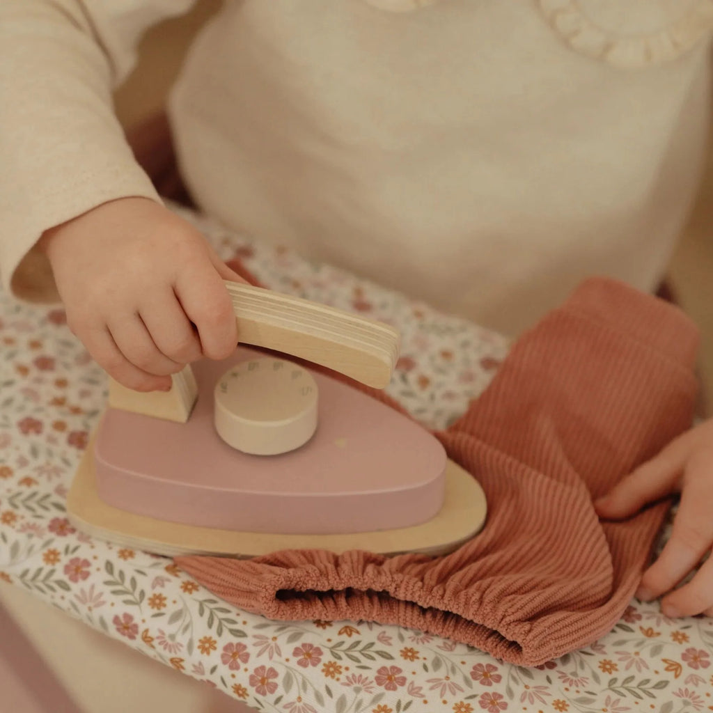 Bügeln wie die Großen! Mit diesem wunderschönen hölzernen Bügelbrett und dem passenden Bügeleisen können die Kleinen die Kleidchen ihrer Puppen oder Kuscheltiere ordentlich glatt bügeln. Das Brett ist klappbar, sodass es leicht verstaut werden kann. Eine perfekte Ergänzung zum Rollenspiel und eine großartige Möglichkeit, Haushaltsaufgaben spielerisch zu entdecken!