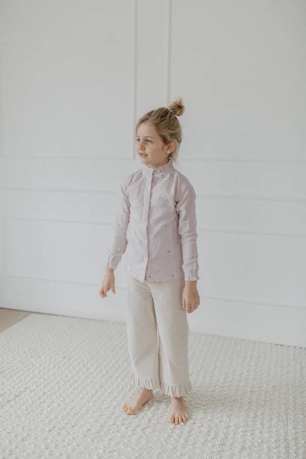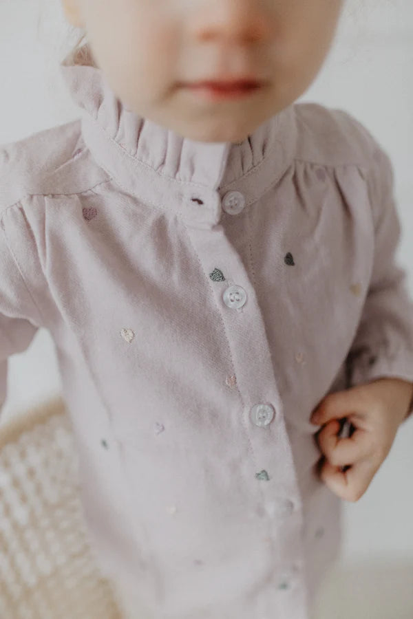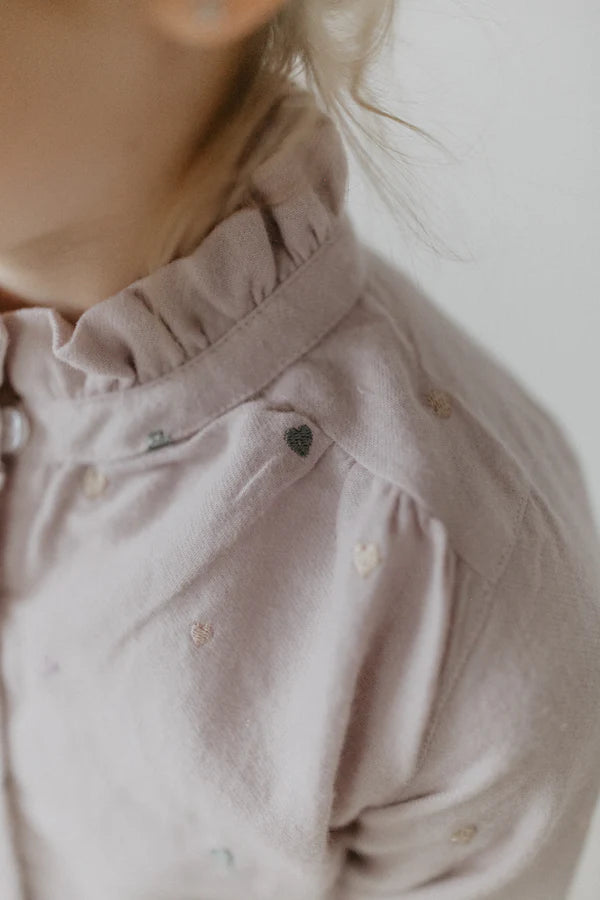 Flanellbluse mit Herzchen-Stickerei und Stehkragen 'lavender'
