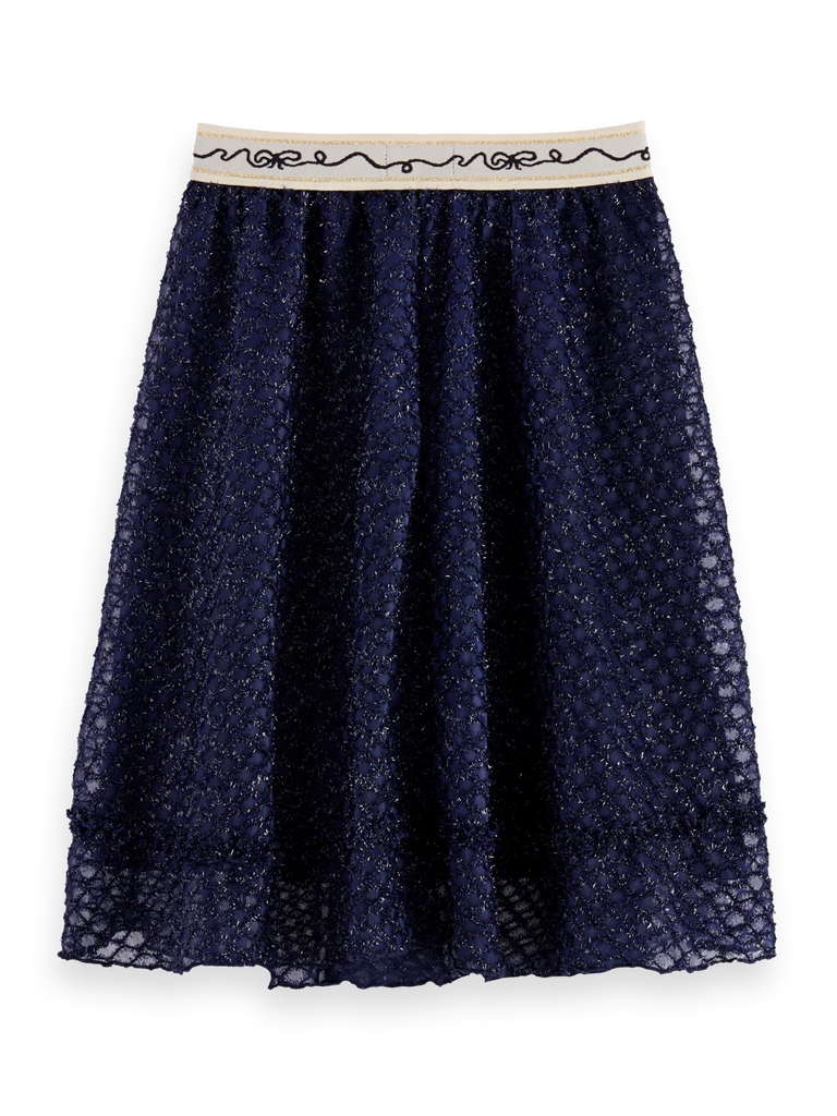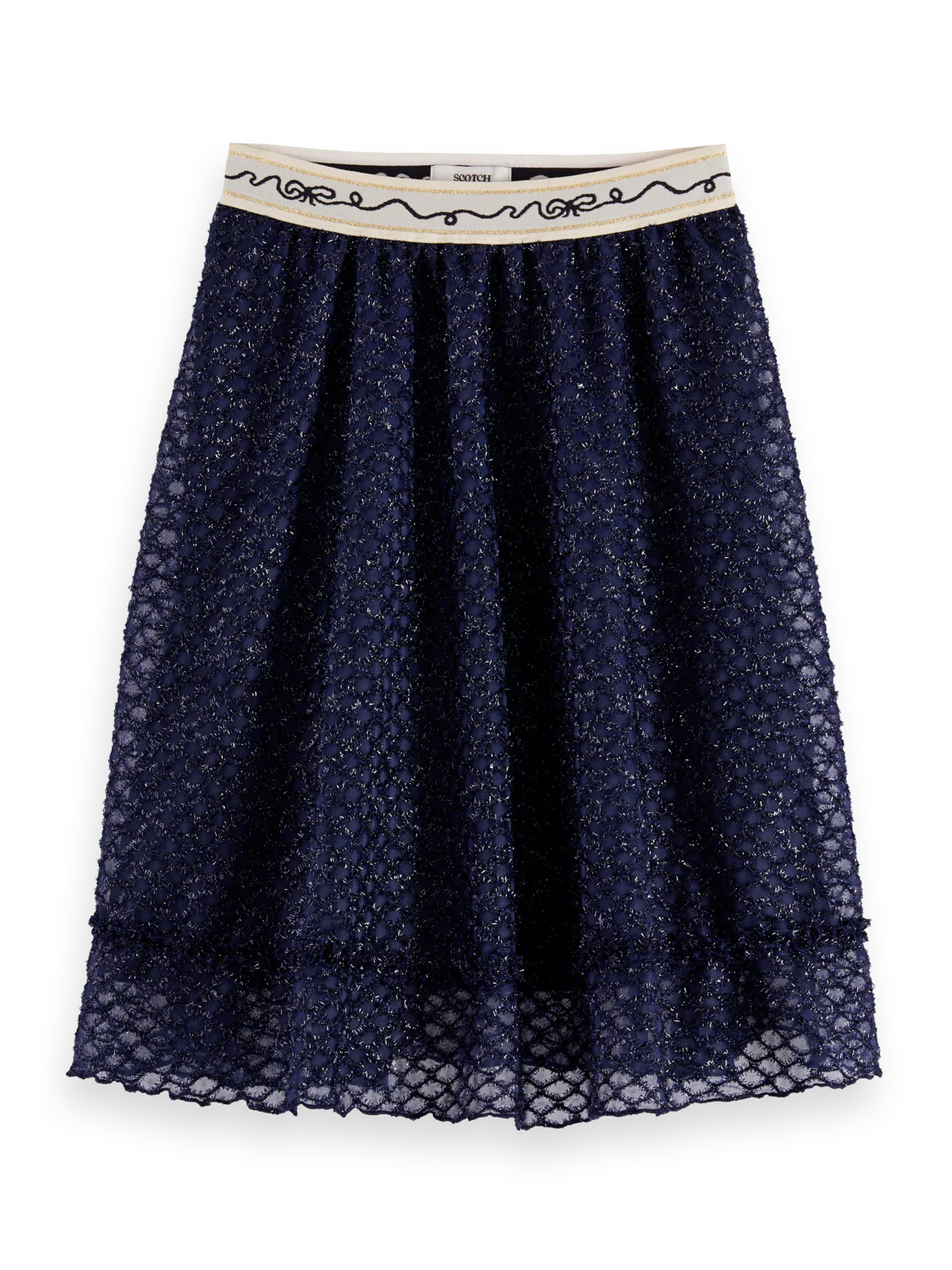 Ein fließender Midirock, aufwendig mit Lurexfäden gewebt, mit raffinierter Textur und elegantem Fall für besondere Anlässe.
