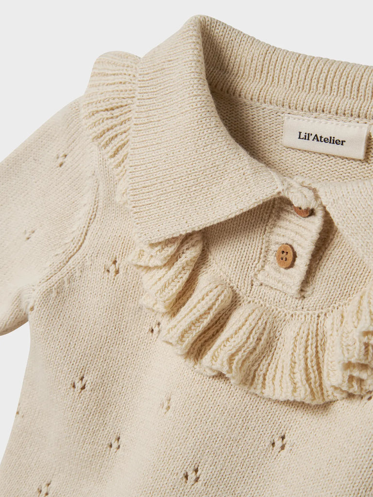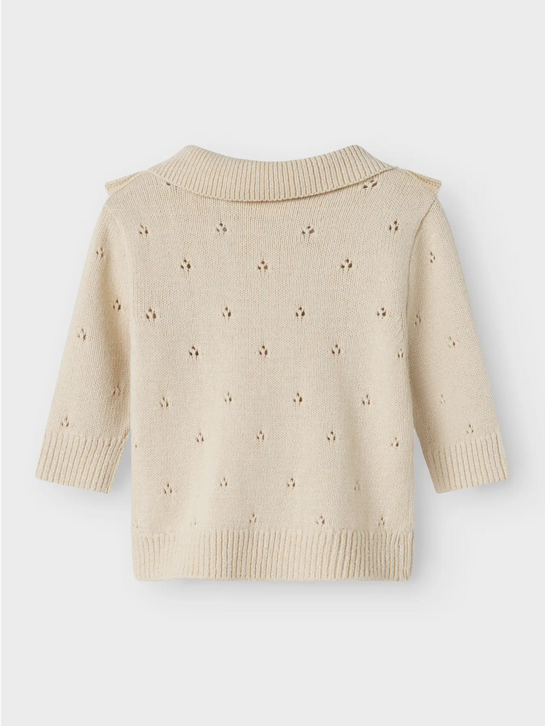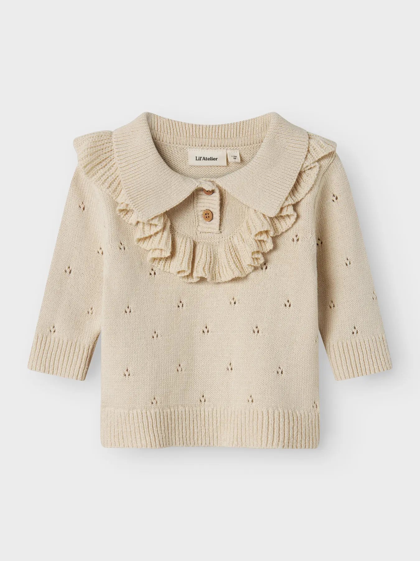 Stellen Sie mit hochwertigen Alltagsstyles das perfekte Outfit für Ihr Kind zusammen und kreieren Sie einen bequemen und trendigen Look. Strick zeichnet sich durch offene Designs und Weichheit für ein angenehmes Tragegefühl aus. - Produkttyp: Strickoberteil - Hals: Polo - Ärmel: Lange Ärmel - Verschluss: Knopfverschluss - Zusätzliche Details: Rüschen - Passform: Lockere Passform
