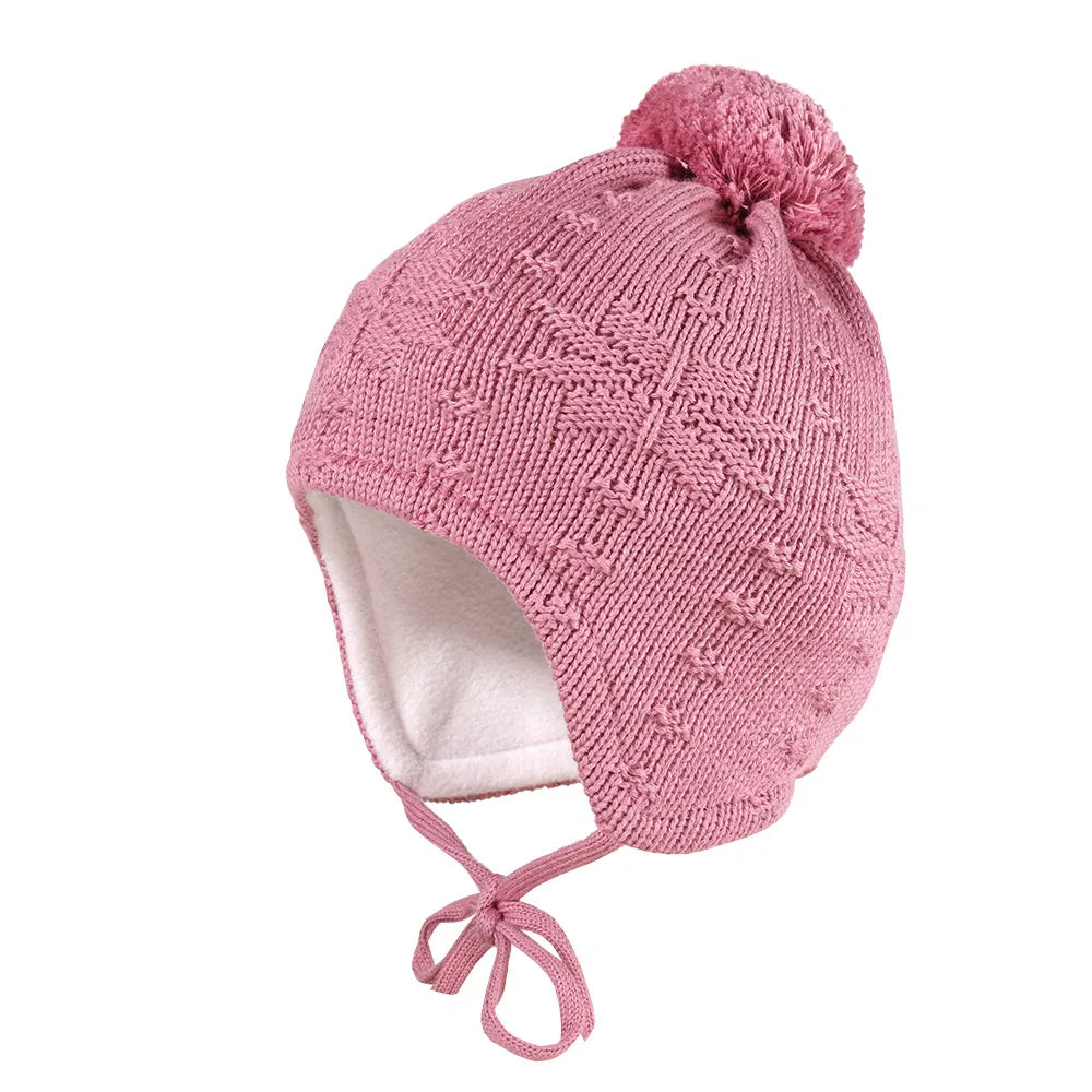 MINI-Mütze ausgenäht, Futter Struktur Norwegerstern, großes Pompon