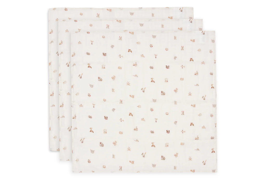 Diese weichen Mulltücher sind ideal für die tägliche Pflege Ihres Kleinen. Sie nehmen Feuchtigkeit gut auf und fühlen sich wunderbar luftig an. Perfekt als Spucktuch, Handtuch oder Unterlage. Das fröhliche Animal Friends-Muster mit verspielten Tieren macht sie besonders niedlich! Im 3er-Pack - praktisch für zu Hause und unterwegs.