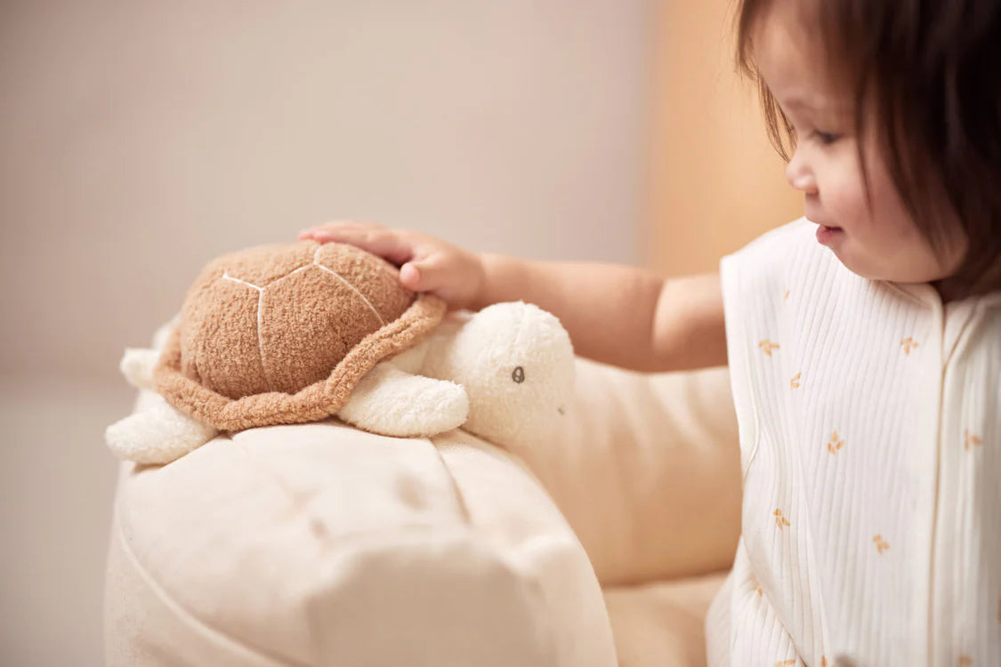 Hergestellt aus weichem Bouclé und Fleece, in der vertrauten und beruhigenden Farbe Nougat: Dieses Aktivitätsspielzeug macht nicht nur Spaß, sondern wirkt auch beruhigend, wenn man es festhält. Mit unserem Seehund-, Schildkröten- oder Wal-Aktivitätenspielzeug erlebt dein Baby sensorische Abenteuer und Kuschelmomente.