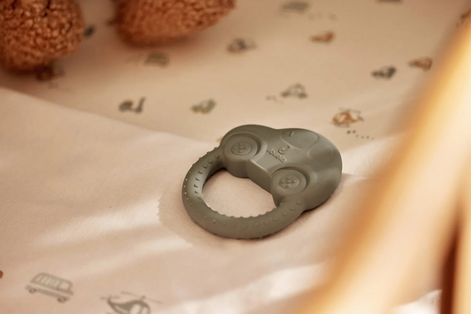 Dieser süße Beißring in Form eines Autos aus dem „On The Go"-Thema ist perfekt für kleine zahnende Entdecker! In dem fröhlichen Sea Green ist dieser Beißring nicht nur schön anzusehen, sondern auch super leicht zu reinigen. Er unterstützt die Entwicklung des Kiefers, lindert Schmerzen beim Zahnen und sorgt für eine lustige Ablenkung. Entscheide dich für Kautschuk und lasse dein Baby sicher auf Erkundungstour gehen!