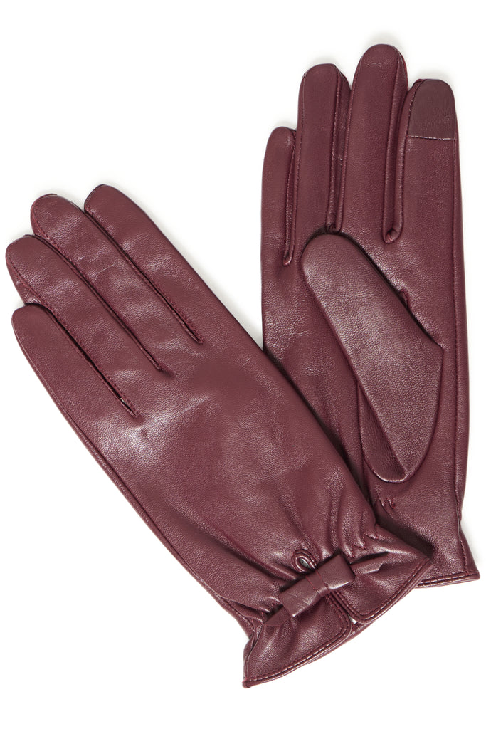 Zeitlose Handschuhe mit glatter Oberfläche und passgenauem Schnitt. Dezente Raffung und kleine Schleife am Handgelenk setzen Akzente.