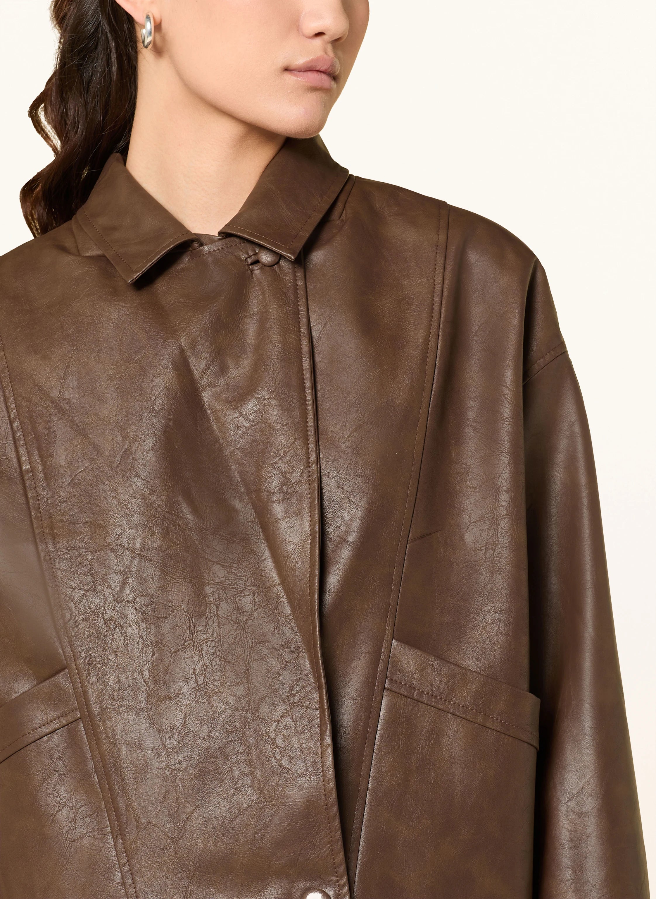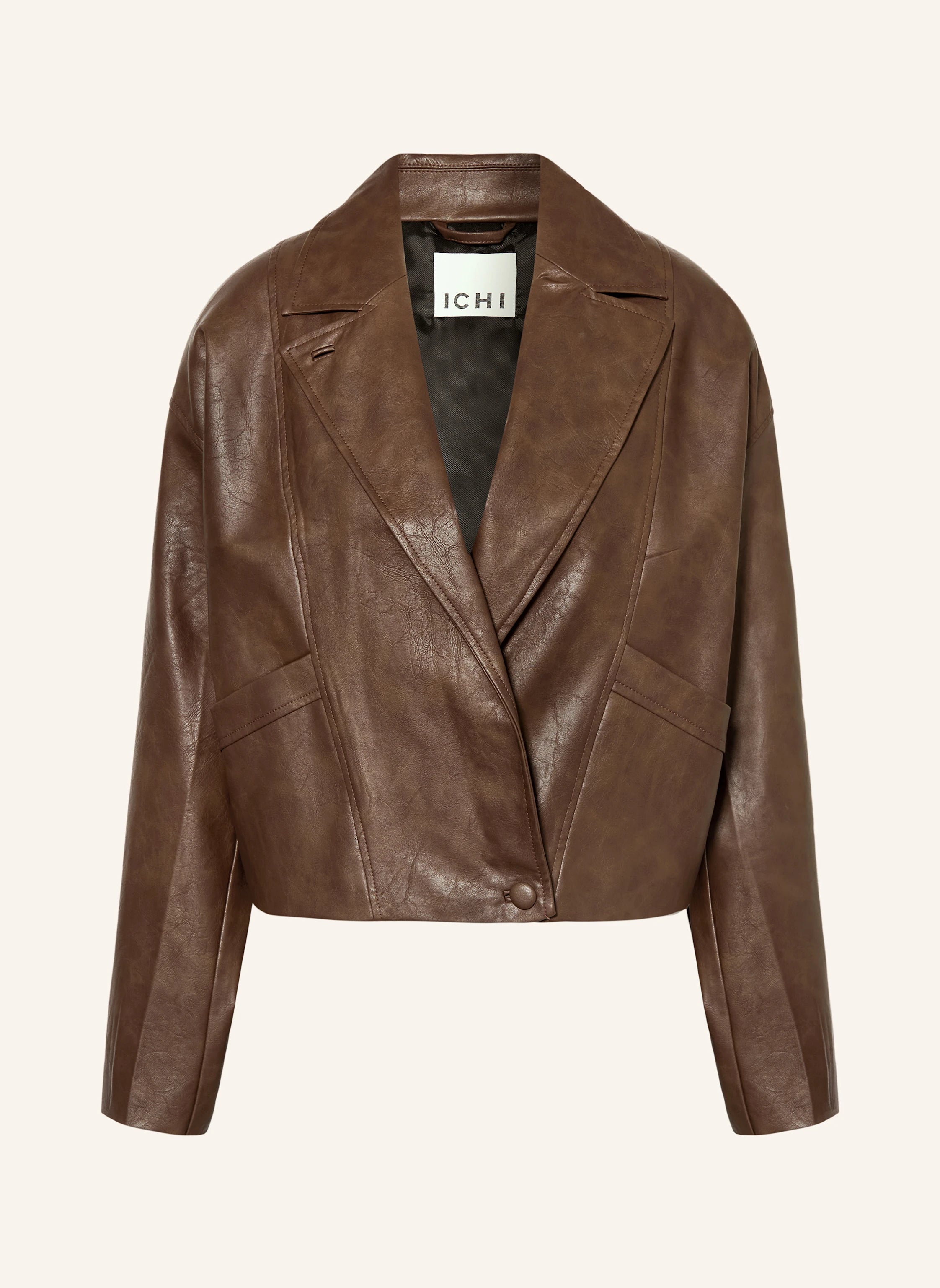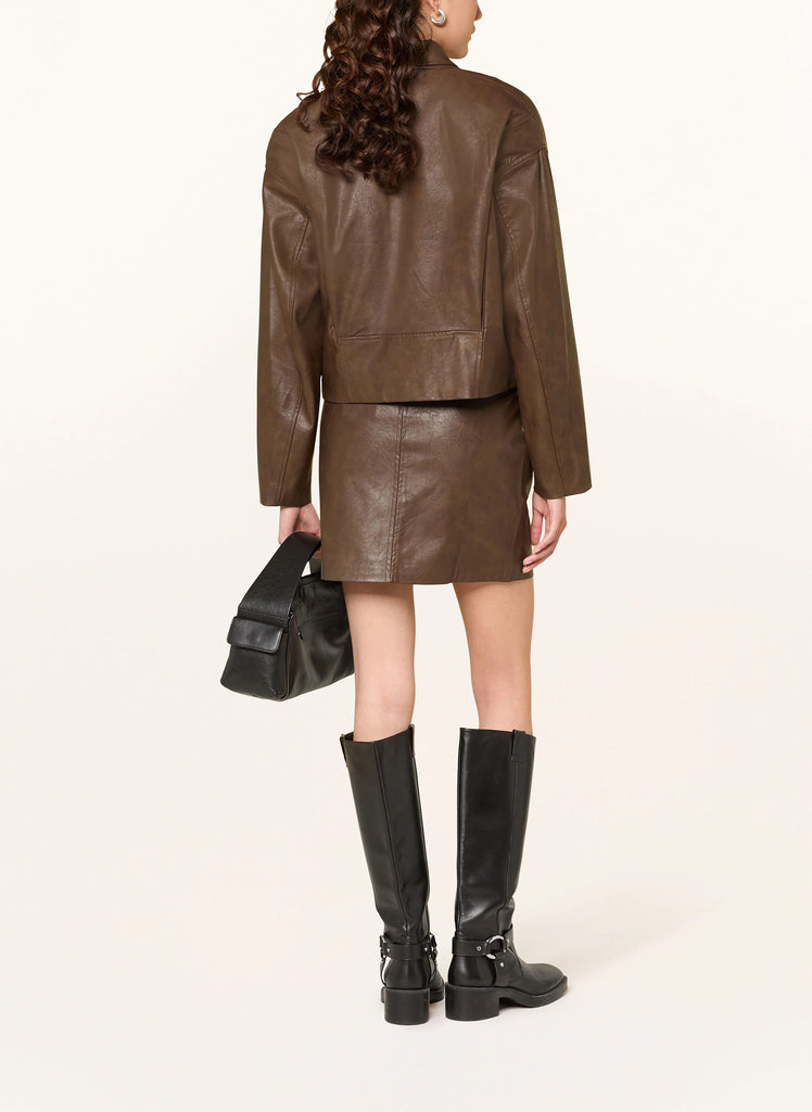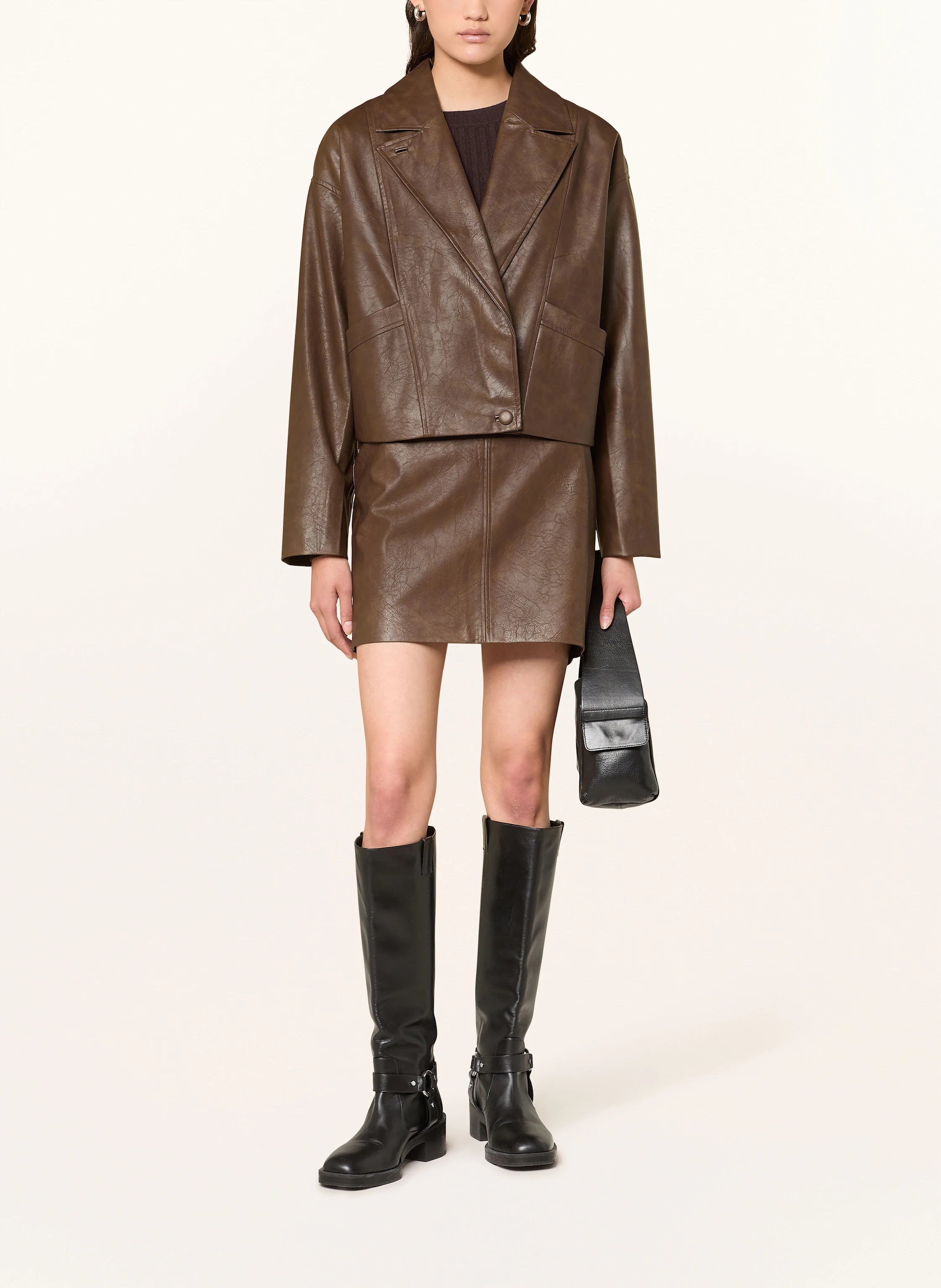 Diese Damenjacke aus Kunstleder besticht durch eine lockere Passform und einen kurzen Schnitt. Mit Reverskragen, Knopfverschluss und langen Ärmeln.