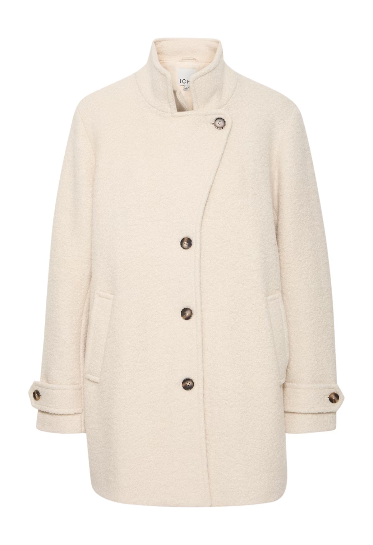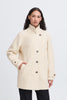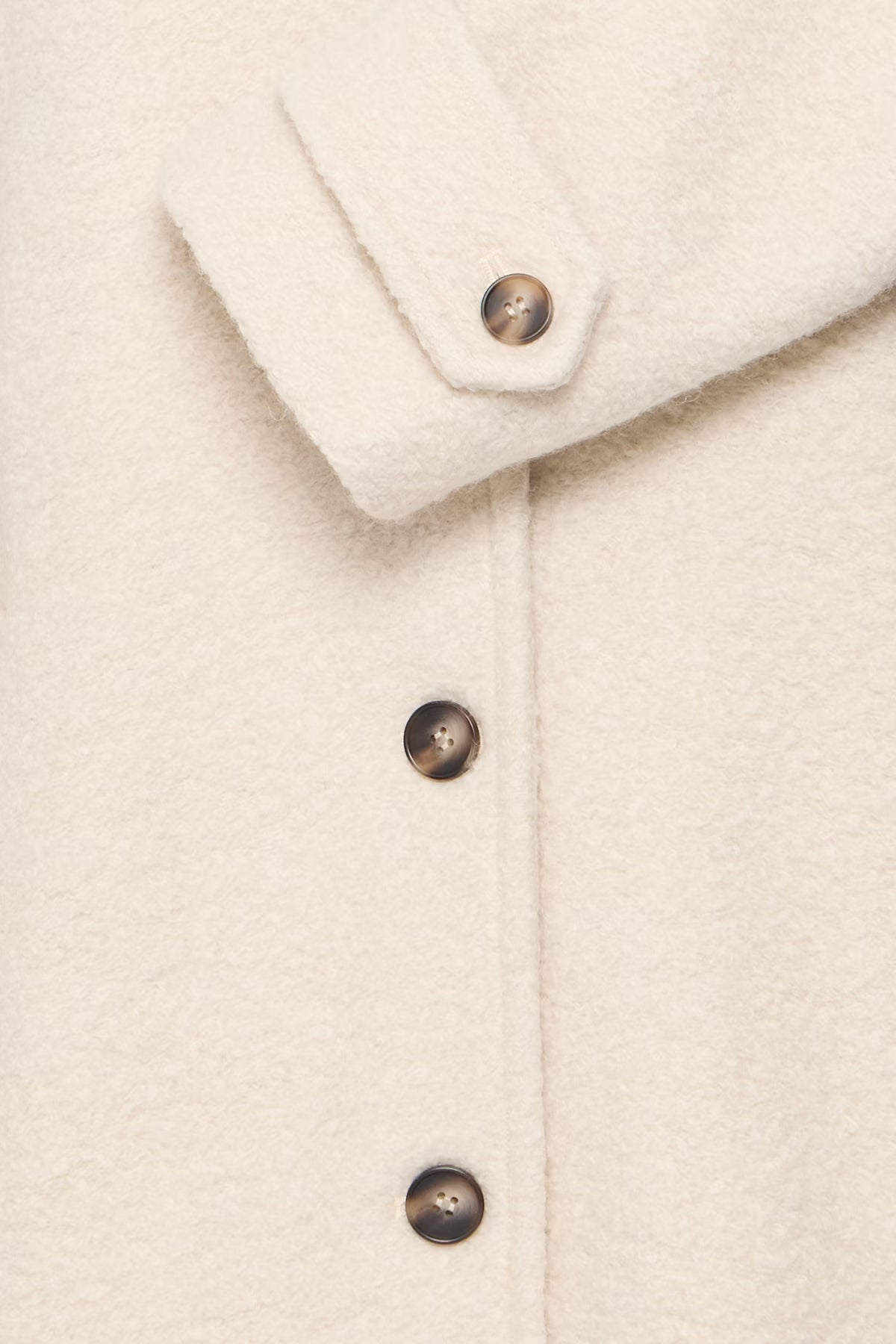 Wollmantel für Damen mit bequemer, gerader Passform und klassischem Kragen. Knopfverschluss und praktische Seitentaschen für vielseitige Looks.