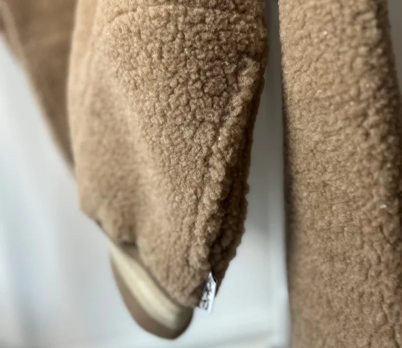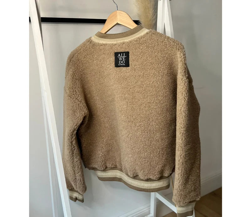 ULTRALEICHTE WOLLE 100 % Wolle in einem Fleece mit Schaffellstruktur und einer sehr leichten Formel. Der Stoff zeichnet sich durch außergewöhnliche Weichheit und Elastizität aus, wodurch er uns sanft umhüllt. Charakteristisch für dieses Material ist seine schwarze Basis, die die Farbe des verwendeten Wollvlieses intensiv zur Geltung bringt.
