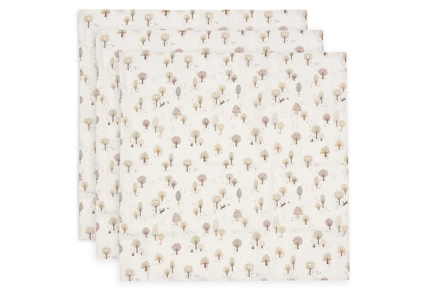 Diese weichen Mulltücher sind unverzichtbar bei der Pflege Ihres Kleinen. Sie nehmen Feuchtigkeit gut auf und fühlen sich angenehm luftig an. Ideal als Spucktuch, Handtuch oder Unterlage. Das süße Leafy Dreams-Muster mit verspielten Blättern schafft eine gemütliche und natürliche Atmosphäre. Verpackt zu 3 Stück und perfekt für zu Hause und unterwegs.