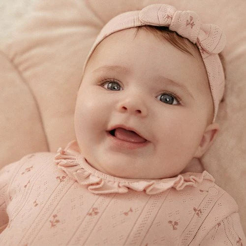 Träumen Sie sich weg in den niedlichen Charme dieses langärmeligen Stramplers! Hergestellt aus weicher Bio-Baumwolle, vereint er Komfort mit einem wunderschönen Design. Die raffinierte Pointelle-Struktur des Stoffes, in einem wunderschönen hellen Rosaton, ist mit einem bezaubernden Druck kleiner Blümchen verziert. Die Rüschen entlang des Halsausschnitts verleihen eine zusätzliche Prise Flair. Der praktische Druckknopfverschluss im Schritt erleichtert das Wickeln. Der Strampler lässt sich mühelos mit jedem Stück aus der koordinierten Fairy Garden-Kollektion kombinieren.