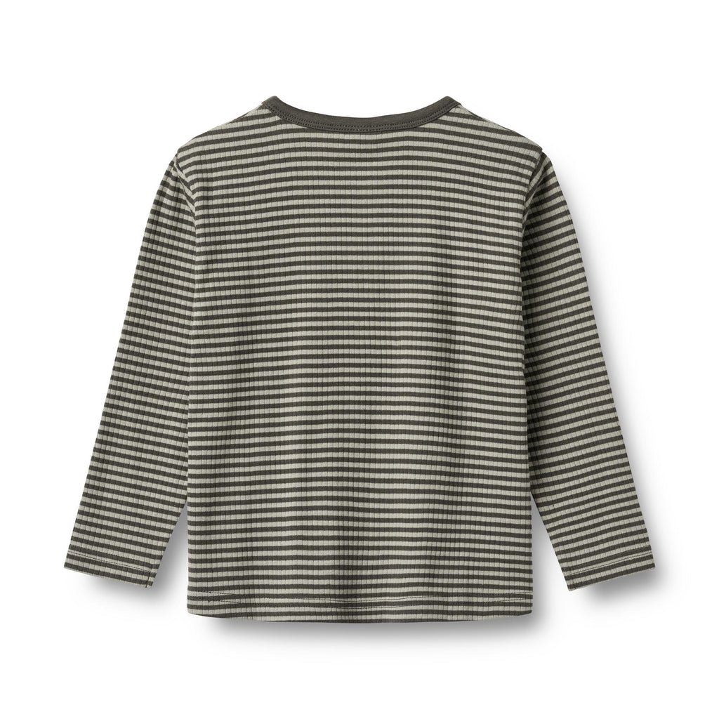 Langärmeliges gestreiftes T-Shirt aus weicher Bio-Baumwolle für das Kind.