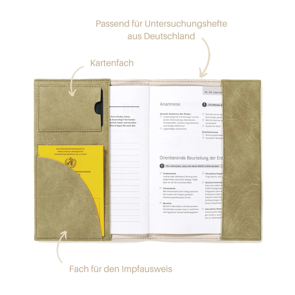 Gut organisiert von Geburt an. Unsere U-Heft Hülle begleitet dich und dein Baby von der U1 bis zur U9. Die Hülle schützt vor Knicken und Falten und du hast alle wichtigen Gesundheitsdokumente deines Kindes immer gut sortiert und schnell griffbereit. Die Größe entspricht den Maßen des deutschen und des Schweizer Untersuchungsheftes. Neben dem U-Heft ist auch Platz für Notizen, den Impfpass, Befunde oder Visitenkarten.
