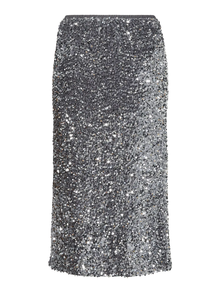 Dieses Modell ist aus Polyestergewebe gefertigt, einem sehr strapazierfähigen Stoff. - Produkttyp: Rock - Taille: Hohe Taille - Länge/Größe: Extra lang - Zusätzliche Details: Pailletten, Gummizug in der Taille