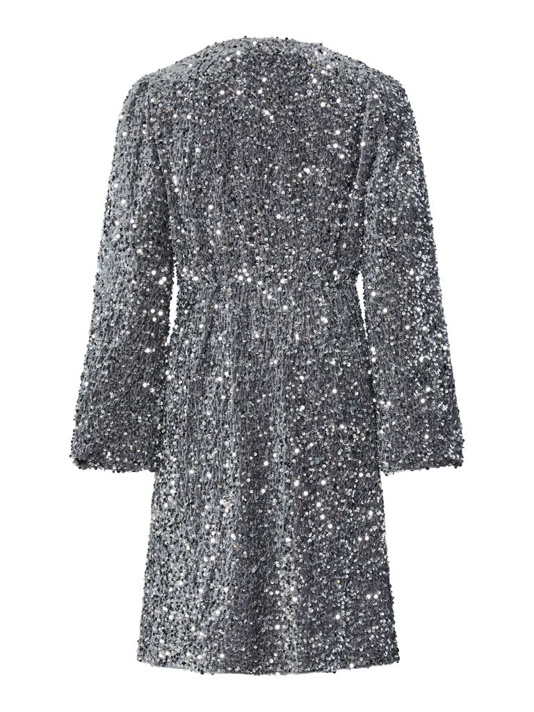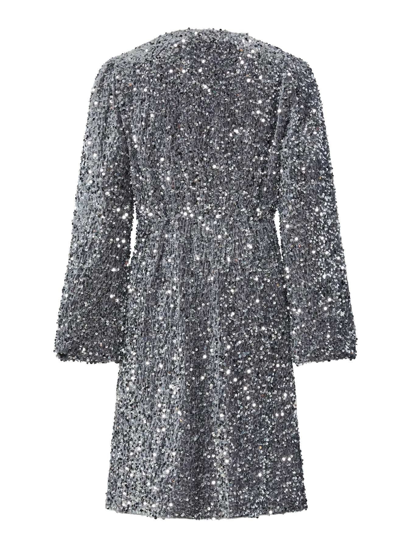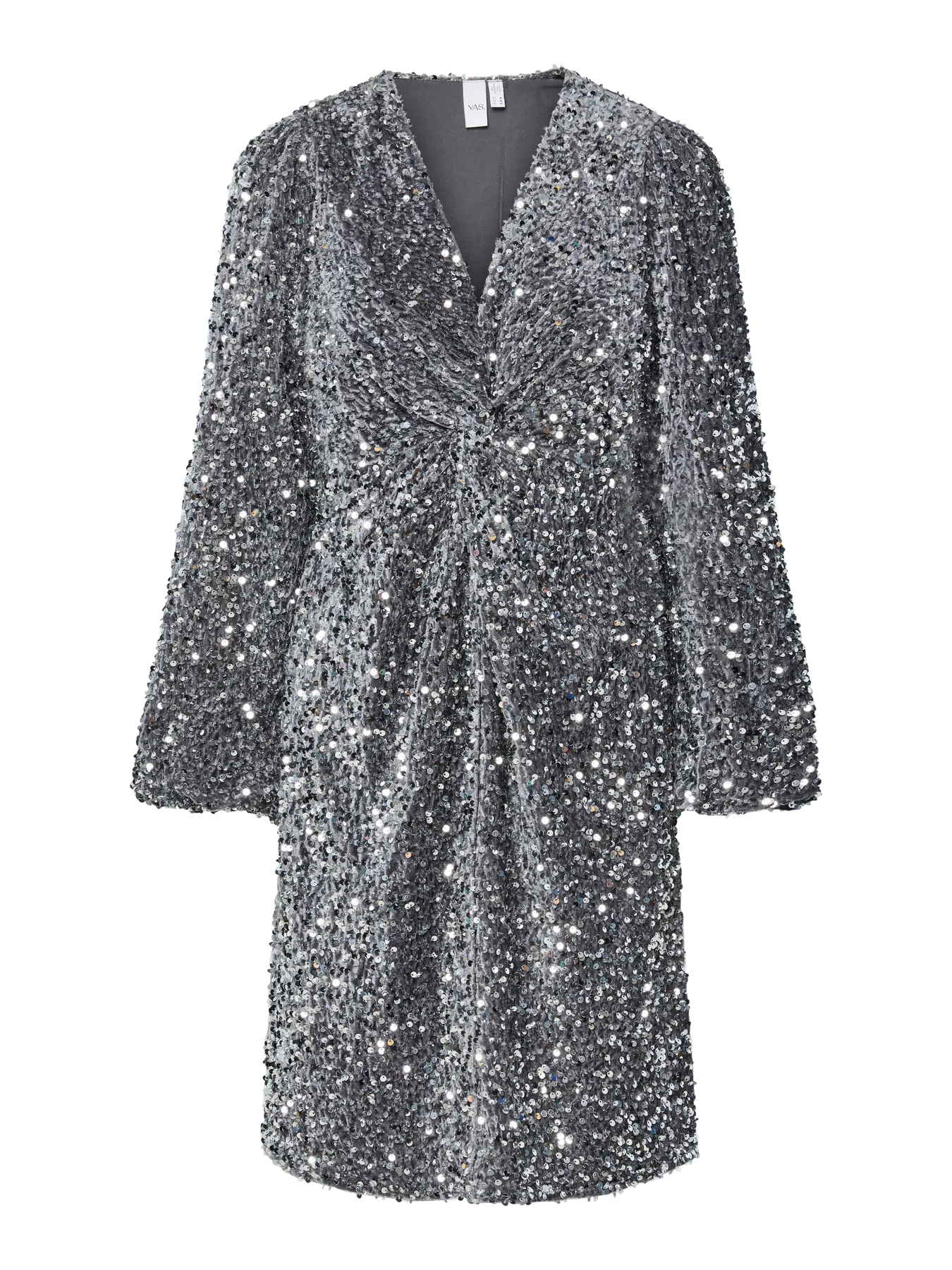 Machen Sie sich schick und feiern Sie alle Ihre besonderen Momente mit unserer eleganten und gehobenen Partykollektion, die Ihnen das Selbstvertrauen gibt, aufzufallen. Dieses Modell ist aus Polyestergewebe gefertigt, einem sehr strapazierfähigen Stoff. - Produkttyp: Kleid - Hals: V-Ausschnitt - Ärmel: Lange Ärmel (L/S) - Zusätzliche Details: Pailletten - Passform: Normale Passform